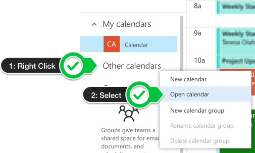 Click on the name of the desired person/calendar and click Open