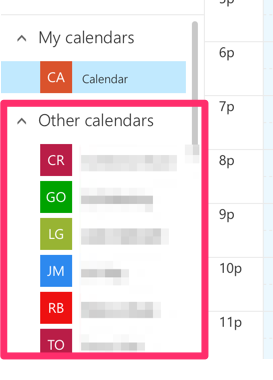 Enjoy your shared calendars that show up under "Other calendars."