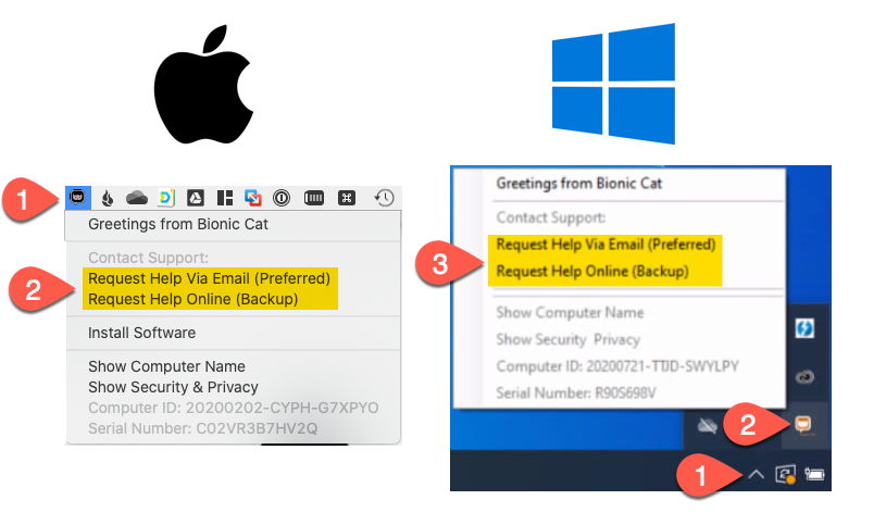 For our monitoring clients, simply look to your menubar for the Bionic Cat icon. You'll see this near the time at the top-right of your screen. For Windows users, look to the System Tray at the bottom right for your Bionic Cat icon.