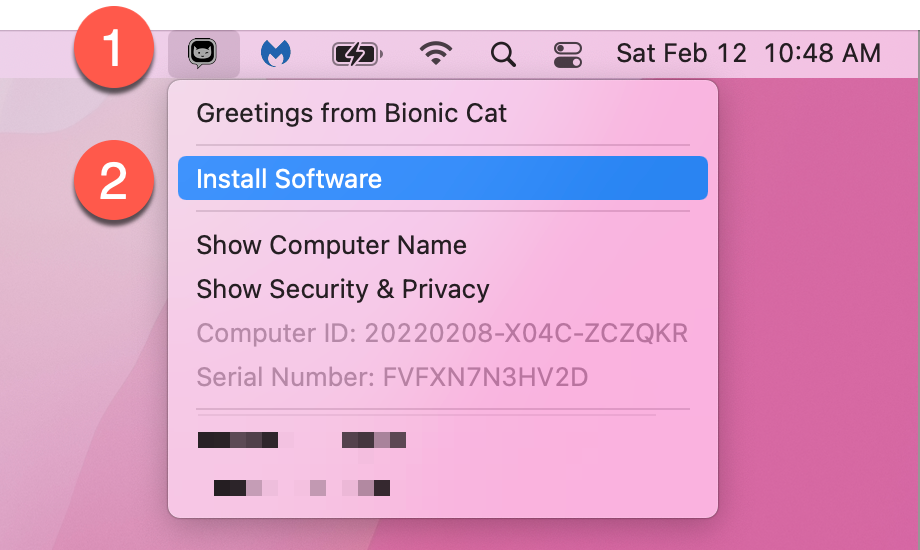 Look for the Bionic Cat icon in your menubar toward the top-right of your screen (near the time) and select "install update."