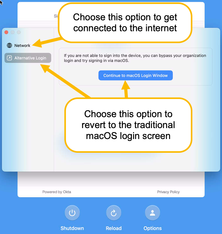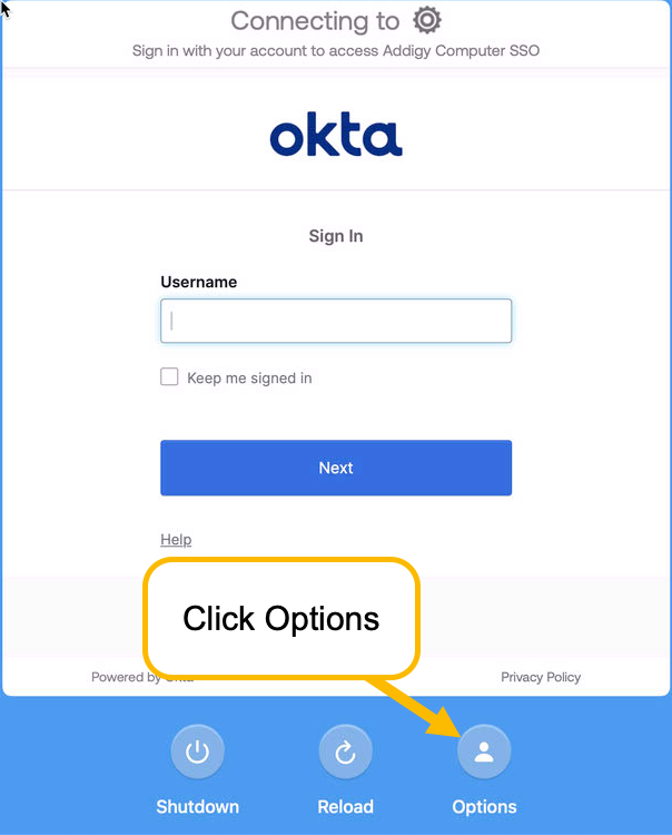 If you use your Google, Okta or Microsoft account to log into your computer using Addigy Identity, here are some tips regarding the login window.